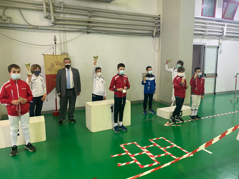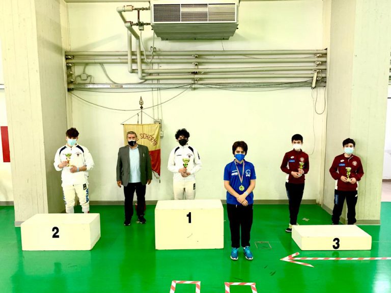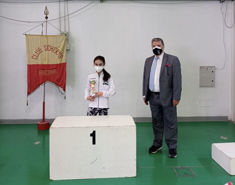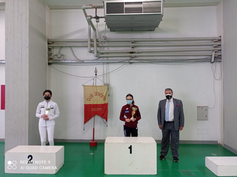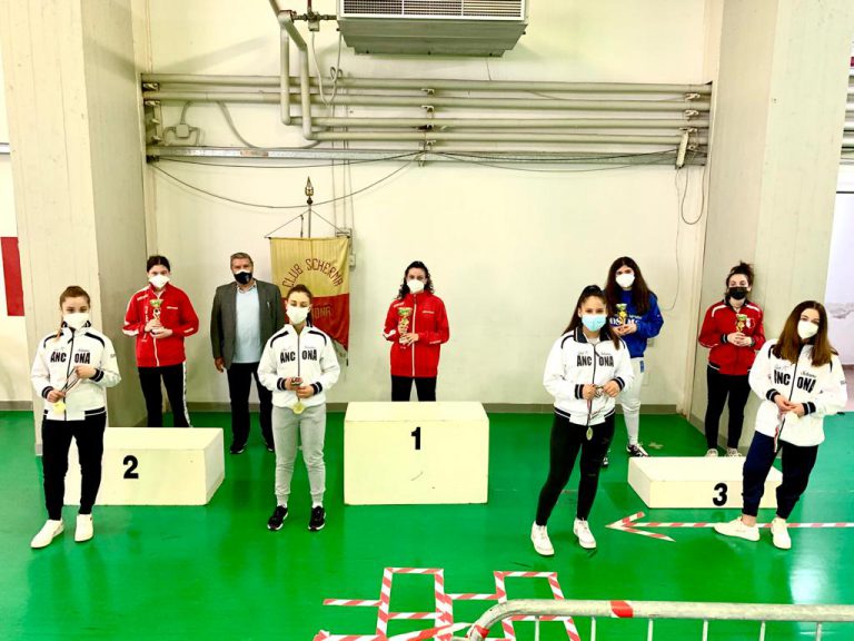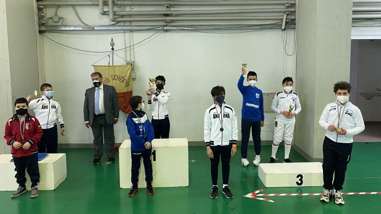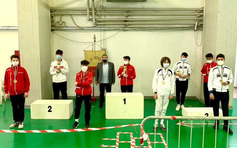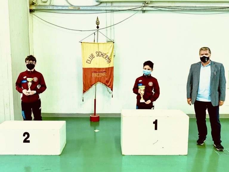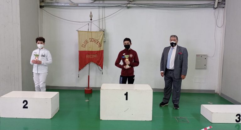 La giornata sportiva di domenica si è aperta con le gare di Fioretto Giovanissimi che hanno visto la vittoria di Filippo Starniero del Club Scherma Anconasu Leonardo Gambitta sempre della squadra dorica. Terzi pari merito Giulio Massimo Castori dell’Accademia della Scherma Fermo e Brando Catena del Club Scherma Recanati.