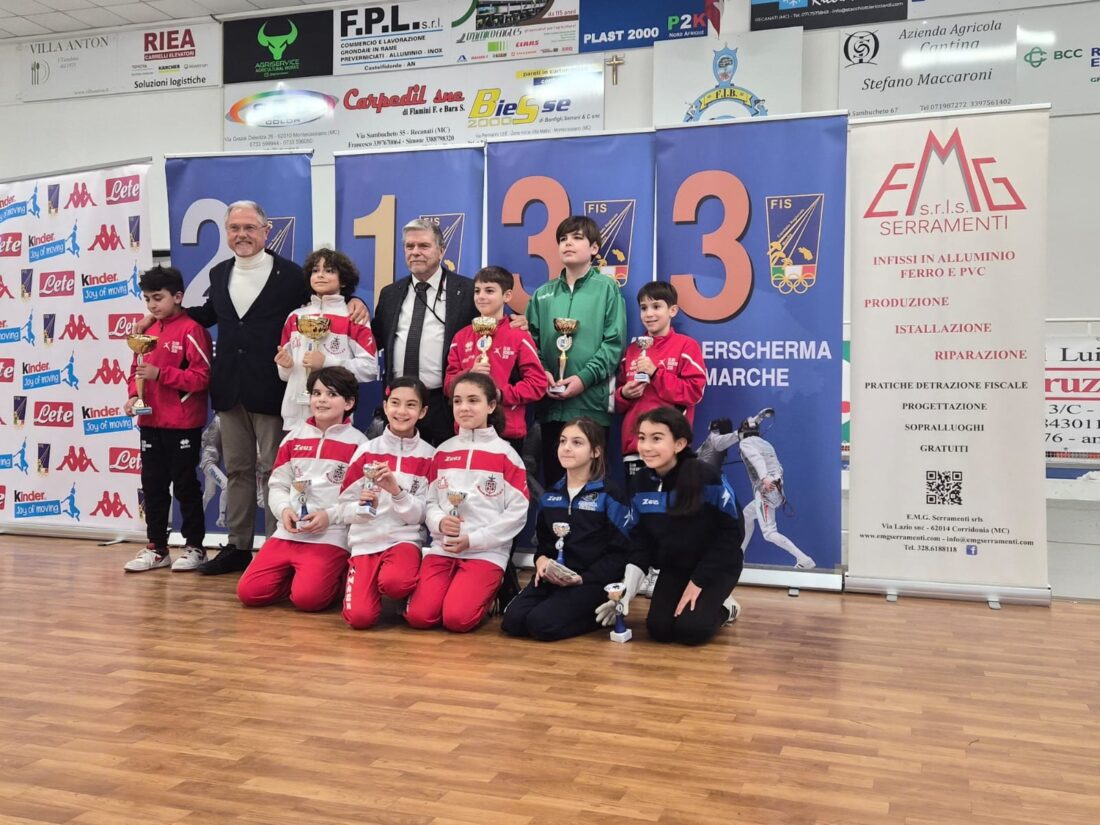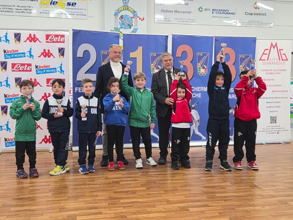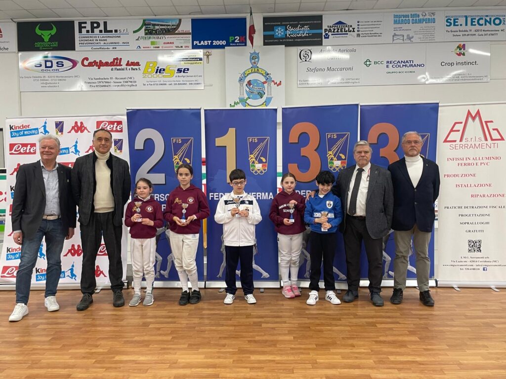 Trattandosi di una gara promozionale non agonistica, in tutte le altre categorie i partecipanti sono risultati pari merito. A premiare i giovanissimi atleti, il consigliere con delega allo Sport del Comune di Montecassiano Giampiero Virgili, il presidente del Macerata Scherma Alberto Affede e il presidente del Comitato FIS Marche Stefano Angelelli.
