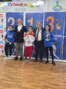 Giulio Gabrielli del Macerata Scherma ha conquistato il primo gradino del podio della categoria E, seguita al secondo posto da Nicole Drenova, del Club Scherma La Misericordia Osimo e al terzo da Kelly Bugiolacchi del Club Scherma Recanati.