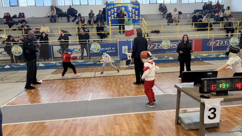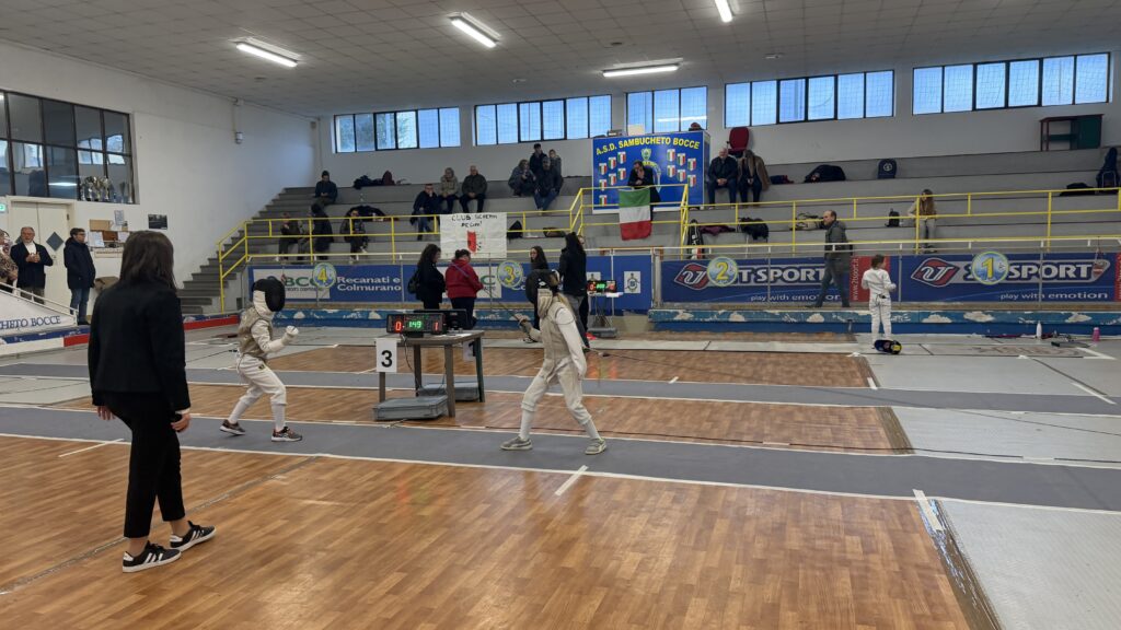 Erano oltre 90 i giovani fiorettisti che oggi a Montecassiano (MC), in Frazione Sambucheto, hanno incrociato le lame all’interno della Bocciodromo di via Ugo La Malfa, trasformata in sala d’arme, in occasione della 3° prova regionale promozionale. Alla competizione erano presenti tutti i club schermistici marchigiani, che hanno visto i loro atleti confrontarsi nelle varie categorie: