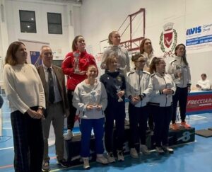2° e 3° Gradino del podio, nel Fioretto femminile Cat.0 (24+) per Alessandra Petrignani del Club Scherma Jesi e Maria Grazia Magistrelli del Club Scherma Ancona; 14° l’altra anconetana in gara Giulia Parlanti.