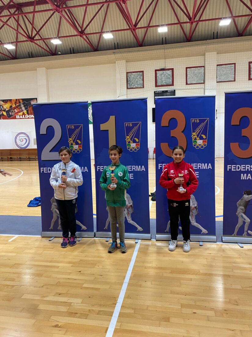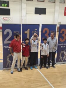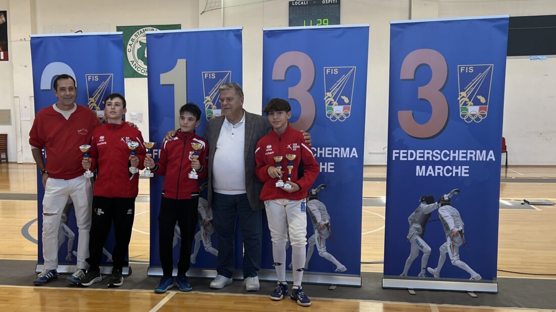 Nella categoria Mschietti: 1° Eugenio Miandro del Club Scherma Fabriano; 2° e 3° Leonardo Cantarini e Romeo Pierfrancesco Giorgi del Club Scherma Pesaro.