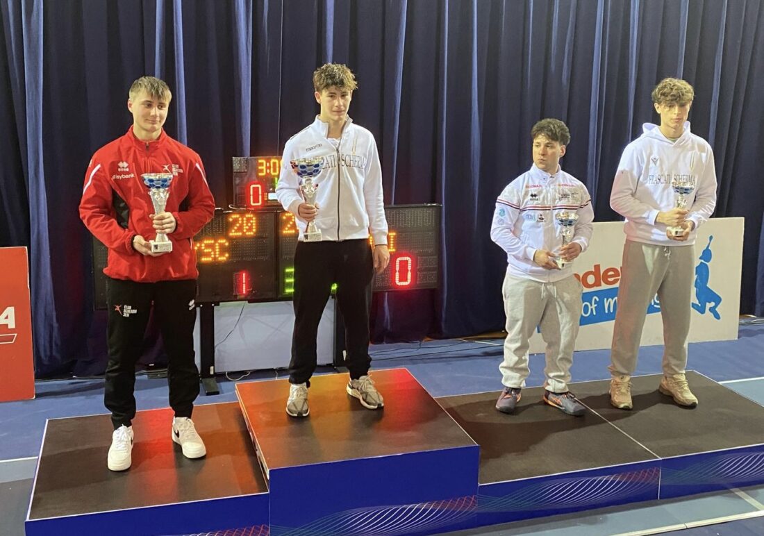 La giornata di oggi, dedicata al Fioretto maschile, ha visto un ottimo 2° posto di Francesco Cercaci del Club Scherma Jesi; 5° Federico Greganti del Club Scherma Jesi; 8° Enrico Giovanni Lauria del Club Scherma Ancona; 10° Francesco Vannucci del Club Scherma Jesi; 12° Luca Ceccolini del Club Scherma Pesaro; 13° Vincenzo Erman del Club Scherma Senigallia; 16° Andrea Chiaramonti del Club Scherma Jesi; 20° Lorenzo Sora del Club Scherma Pesaro; 26° e 30° Semuel Lorenzo Duttuthy e Marco Proietti del Club Scherma Jesi; 34° Simone Santarelli del Club Scherma Senigallia; 50° Leonardo Gambitta del Club Scherma Ancona; 56° Federico Lanari del Club Scherma Pesaro; 65° Giulio Massimo Castori dell’Accademia della Scherma Fermo; 69° Sergio Della Gatta del Club Scherma Ancona; 72° Alessandro Ippoliti del Club Scherma La Misericordia Osimo; 81° Ettore Grandicelli del Club Scherma Pesaro; 84° Przemyslaw Szym Wolny del Club Scherma Jesi; 86° Massimo Serenelli del Club Scherma La Misericordia Osimo; 91° Filippo Savoia del Macerata Scherma; 94 Alfred James Leech dell’Accademia della Scherma Fermo; 109° Pierpaolo Maria Silvetti del Macerata Scherma; 111° Francesco Vagata del Club Scherma Jesi; 112° e 117° Luca Vallerani e Pietro Ciccarelli del Macerata Scherma.