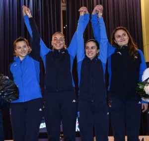 La squadra del C.T. Stefano Cerioni, composta da Alice Volpi, Erica Cipressa, Martina Favaretto e Camilla Mancini, ha iniziato il suo percorso nel tabellone dei 16 con la vittoria netta contro Singapore 45-12, ai quarti incontro combattuto con la Cina dove hanno avuto la meglio col punteggio di 44-41; in semifinale batte il Canada, 45-37 e nella finale l’Italia deve affrontare il Giappone un incontro tiratissimo concluso a favore delle azzurre 43-40