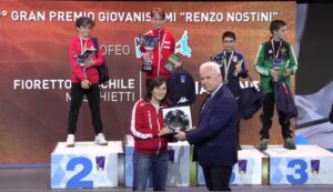 Non ha nascosto la grande soddisfazione per la gara impeccabile di Evan, la Maestra Giovanna Trillini, a sua volta premiata dal Presidente della Federazione Italiana Scherma Paolo Azzi