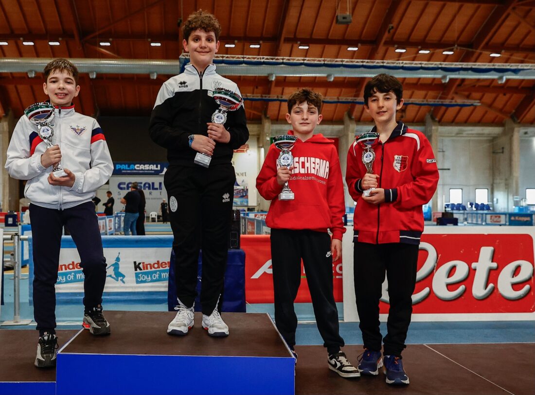 Un altrettanto notevole 3° posto anche nei Maschietti per Leonardo Cantarini del Club Scherma Pesaro. 20° Eugenio Miandro del Club Scherma Fabriano; 21° Riccardo Cianforlini del Club Scherma Ancona; 32° Giovanni Ceccucci del Club Scherma Jesi; 37° Maurizio Pennazzi del Club Scherma Ancona; 44° e 51° Romeo Giorgi Pierfranceschi e Ludovico Loveri del Club Scherma Pesaro; 65° e 66° Falco Gambi Uncini e Tommaso Montironi del Club Scherma Recanati; 83° Gabriele Carletti del Club Scherma Jesi; 92° Willys Alexis Breccia D’Addario del Club Scherma Ancona.