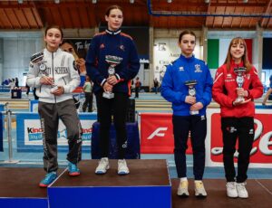 Sabato, nella categoria Ragazze, da segnalare l’ottimo 3° piazzamento di Emma Ciarmboli del Club Scherma Jesi.  6° Vittoria Tattolo del Club Scherma Ancona;  11° Naima Secchiaroli del Club Scherma Pesaro; 41° Keira Lanari del Club Scherma Jesi; 44° Viola Giuliodori del Club Scherma La Misericordia Osimo; 49° e 51° Giulia Pistola e Gaia Zacchei del Club Scherma Jesi; 56° Virginia Potenziani del Club Scherma La Misericordia Osimo; 59° Anna Care del Club Scherma Senigallia; 62° Chiara Rocchetti del Club Scherma Jesi; 69° Andrea Luce Erbacci del Club Scherma La Misericordia Osimo; 89° Annalisa Macini del Club Scherma Ancona; 90° Chloe Fedeli dell’Accademia della Scherma Fermo.