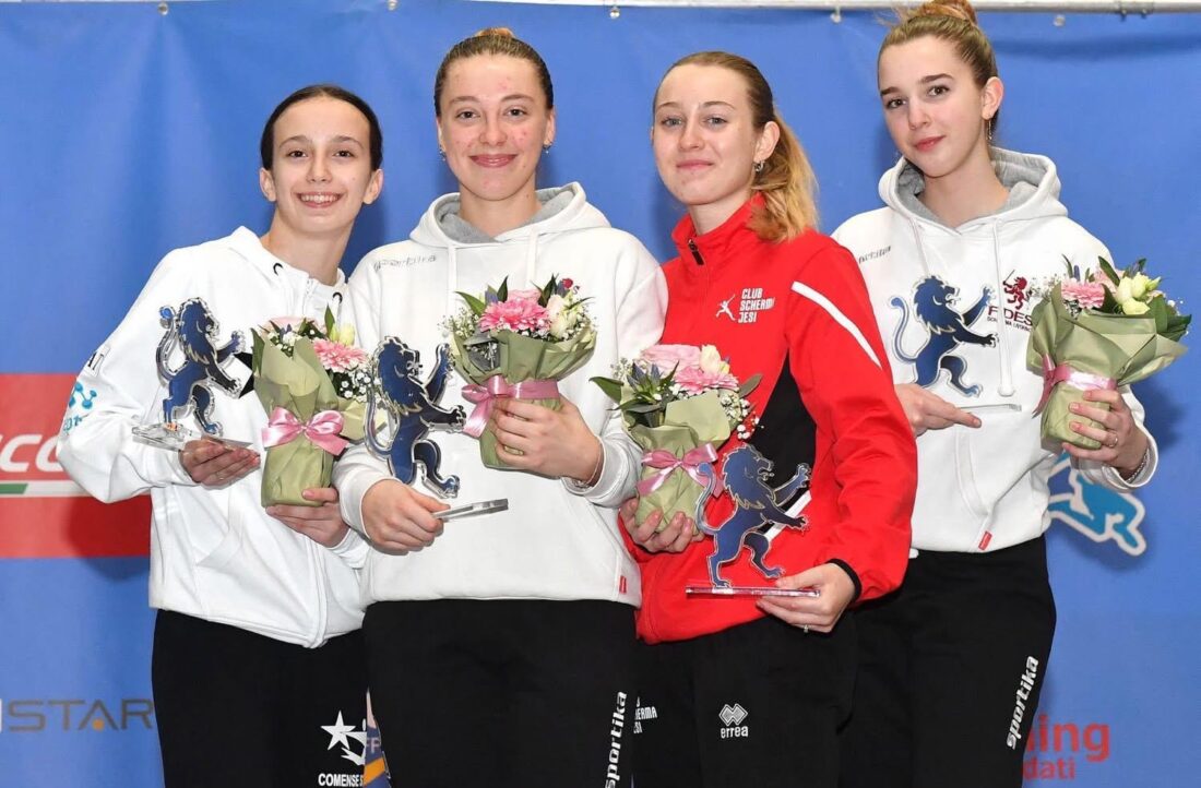 Nella categoria femminile da segnalare una bella prestazione delle marchigiane, con le atlete del Club scherma Jesi che hanno conquistato ben tre posizioni nella top 8. Il 3° piazzamento è stato conquistato, infatti, da Maria Elisa Fattori seguita al 5° da Zoe Segat e da Maria Vittoria Trombetti all’8°. 19° Nicole Calai del Club Scherma Ancona; 40° Ludovica Balducci del Club Scherma Jesi; 41° Anna Sofia Cantarini del Club Scherma Ancona; 47° Chiara Maltoni del Club Scherma Jesi; 53° Chloe De Colle del Club Scherma Ancona; 54° Fabiola Badiali del Club Scherma Jesi; 59° Iris Colantonio dell’Accademia della Scherma Fermo; 68° Sami Alejandra Regina del Club Scherma Ancona; 101° Vittoria Lazzeri del Club Scherma Pesaro; 120° Carol Millevolte dell’Accademia della Scherma Fermo; 129° Elena Rosa Calvi del Club Scherma La Misericordia Osimo.