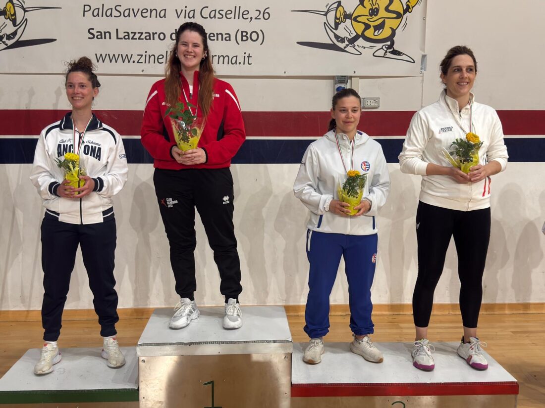 Podio ad alta concentrazione marchigiana anche nel fioretto femminile categoria 0 (24+) con il 1° piazzamento di Alessandra Petrignani del Club Scherma Jesi e il secondo di Maria Grazia Magistrelli del Club Scherma Ancona. 16° Giulia Parlanti, del Club Scherma Ancona.