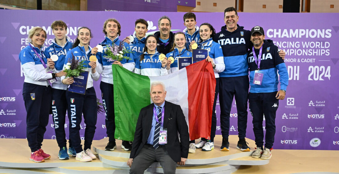 RIYADH – Il team Italia delle fiorettiste è Campione del Mondo, la squadra maschile sale sul secondo gradino del podio. Cambiano i quartetti ma il fioretto del CT Stefano Cerioni è sempre una super-potenza (anche) a livello Under 20: un oro e un argento è il bottino degli azzurrini nell’esaltante domenica dei Campionati Mondiali Giovani di Riyadh 2024.