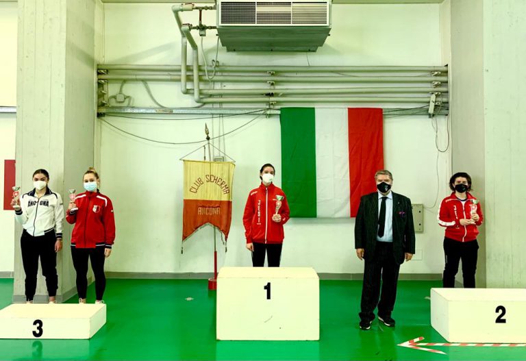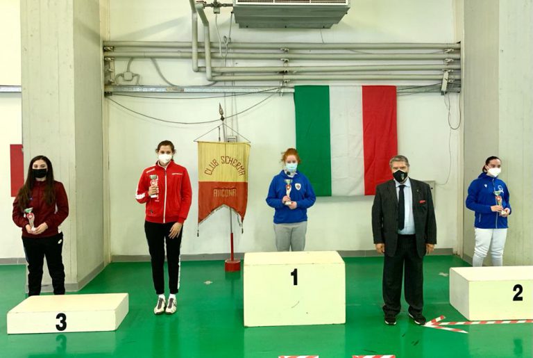 aggiudicata il podio davanti a Giada Pianella del Club Scherma Ancona. Terze classificate Benedetta Pantanetti del C.S. Ancona e Rossolini Maria Angelica del C.S. Jesi. Oltre a loro avranno diritto di partecipare al Campionato Italiano Sofia Giordani del C.S. Jesi, Maria Alessia Sorini del C.S. Jesi, Giulia Carlotti del C.S. Pesaro, Alice Gambitta del C.S. Ancona, Lucrezia Cantarini del C.S. Jesi e Camilla Vaccarini del C.S.  Osimo. Dal Comitato regionale Marche della F.I.S. un doveroso plauso all’agli organizzatori per l’impegno profuso in queste tre settimane consecutive di gare regionali e a tutti gli atleti qualificati, gli auspici migliori per la prossima partecipazione al Campionato Italiano Assoluti.