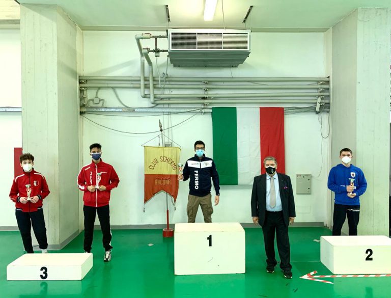 Erano 13, invece, i posti riservati all’Arma di Fioretto maschile per la qualificazione al Campionato Italiano. Il gradino più alto del podio è stato conquistato da Leonardo Pieralisi del Club Scherma Jesi, seguito da Raian Adoul del Club Scherma Ancona. Terzi classificati, pari merito, Enrico Giovanni Lauria del Club Scherma Ancona e Matteo Bartozzi del Club Scherma Jesi. Qualificati al massimo campionato anche: Antonio Romano Gai (C.S. Pesaro), Lorenzo Pantanetti (C.S. Ancona), Marco Vannucci (C.S. Jesi), Giacomo Gancitano (C.S. Ancona), Simone Santarelli (C.S Jesi), Andrea Nigosanti (C.S. Pesaro), Francesco Vannucci (C.S. Jesi), Francesco Zechini (C.S. Ancona) e Marco Proietti (C.S. Ancona).