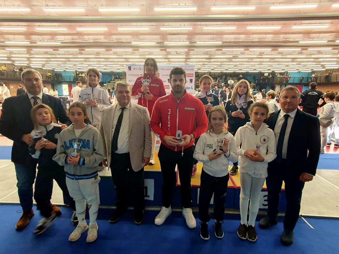 Trionfo marchigiano nella categoria Fioretto Giovanissime con il 1° posto di Maria Vittoria Trombetti e il 3° Elisa Fioretti del Club Scherma Jesi. 5° Silvia Speciale del Club Scherma Ancona, 6° Ludovica Pensato del Club Scherma Recanati, 7° Fabiola Badiali del Club Scherma Senigallia, 8° Chiara Pintucci del Club Scherma Recanati, 12° Emma de Colle e 15° Choe de Colle del Club Scherma Ancona, 19° Eleonora Gregori del Club Scherma Fabriano, 25° Francesca di Dio del Club Scherma Fabriano, 27° Elena Ciriaco del Macerata Scherma e 28° Anita Lanchini dell’Accademia Scherma Fermo.